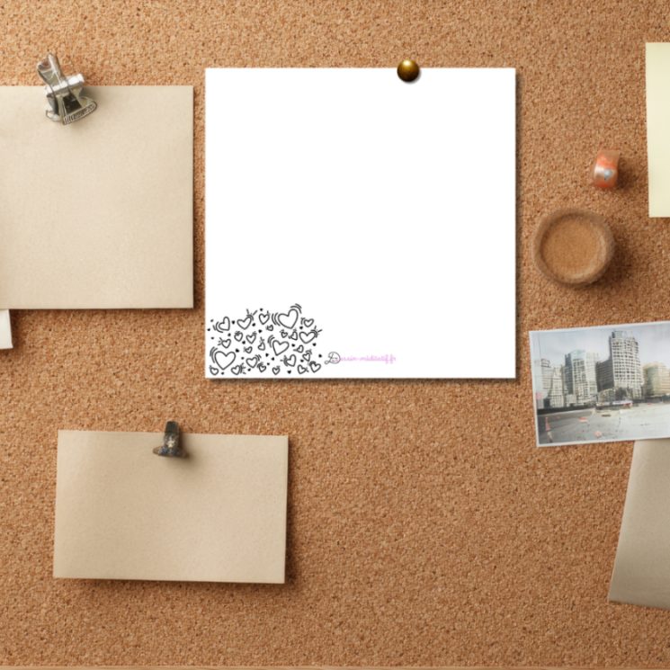 - 1 format carré (15 cm x 15 cm) « doodle cœurs »