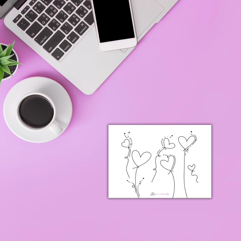 - 1 format carte postale (14,8 cm x 10 cm) « ballons d’amour »
