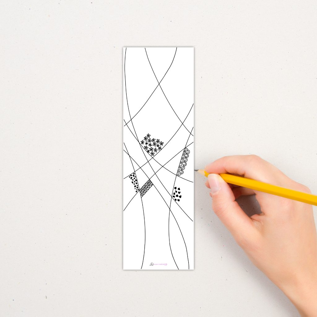 Marque page à dessiner sur le thème du « doodling » (gribouillage en français)